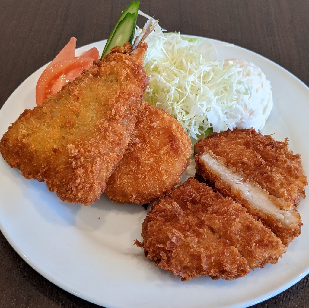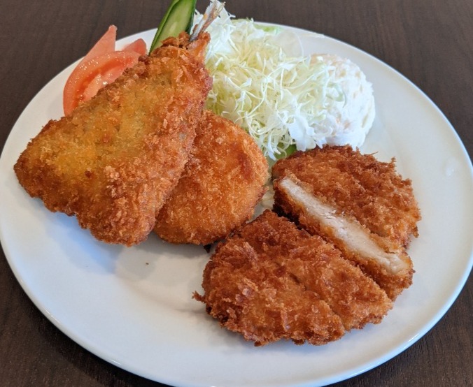 ミックス揚げ物プレート(ロースカツ、アジフライ、カニクリームコロッケ)