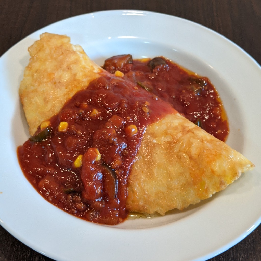 えいとのパパ名物のチーズインT.K.G.(たまごかけごはん)オムライスです